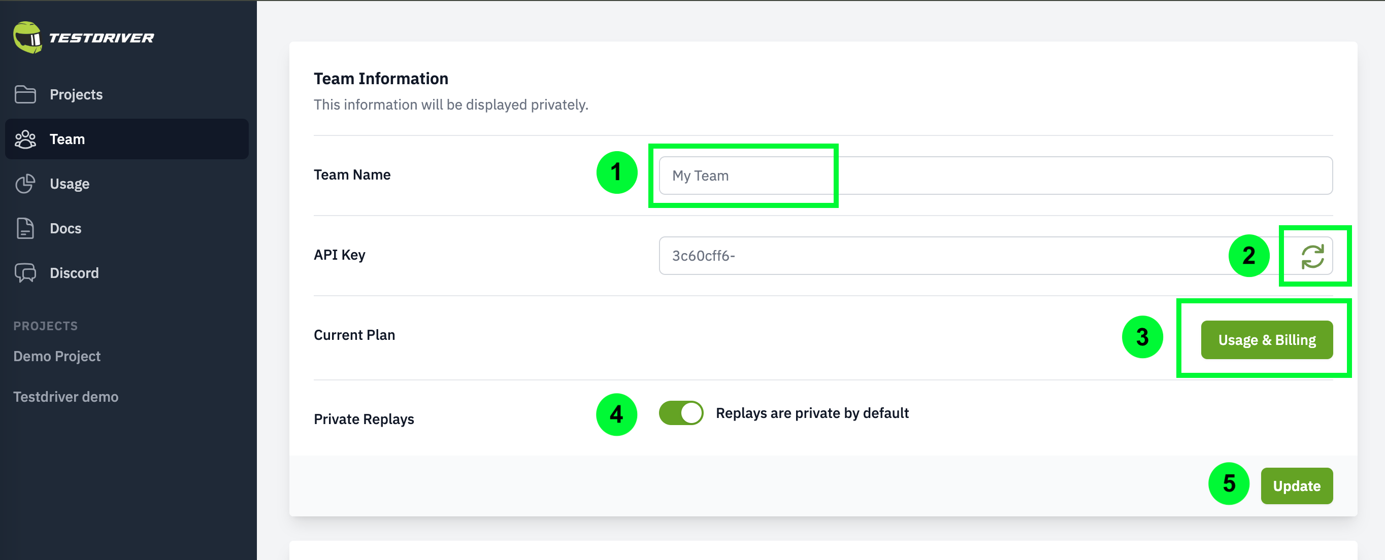 - Team Name: The name of your team. This is used to identify your team in TestDriver.